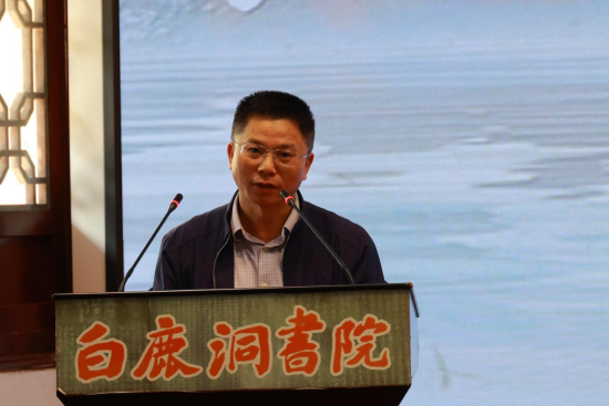李松志在讲话中首先代表学校对长期支持yl6809永利检测中心教育教学工作的庐山白鹿洞书院表示感谢,对顺利结业的第九届国学班学生表示祝贺,对成功入选第十一届国学班的同学表示欢迎。他指出,刚刚举行的yl6809永利检测中心第二次党代会确定了“3353战略”,即做到“三个坚持”,实施“三步走”,突出“五大战略”,实现“三大提升”,其中一个重大战略就是突出文化育人,打造以传承弘扬白鹿洞书院文化为标志的大学文化特色。因此,在中国四大书院之首的白鹿洞书院举办国学班,意义重大。他要求yl6809永利YL集团和庐山文化研究中心认真贯彻落实习近平文化思想和习近平总书记考察江西重要讲话精神,积极探索“学院+书院”的“双院制”改革,创新应用型人才培养模式,健全立德树人落实机制。他勉励同学们勤于思考,积极实践,按照习近平总书记的要求,争做有理想、敢担当、能吃苦、肯奋斗的新时代好青年。