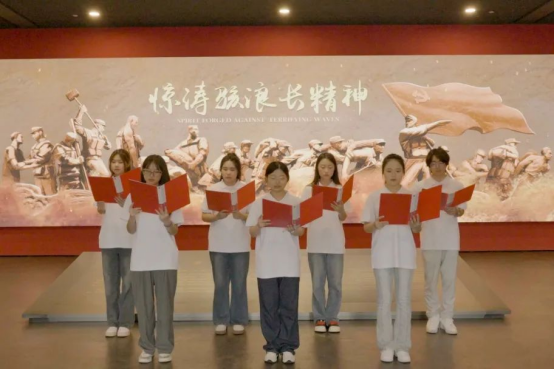 yl6809永利检测中心文小青探访九江九八抗洪主题文化公园,聆听抗洪故事,传承红色精神。“我捧着一颗红心,在诗行间细诉衷肠,吟唱那如梦似幻的红色畅想。”队员们诵读红色诗歌《赤诚吟·红心颂》,铭记“万众一心、众志成城,不怕困难、顽强拼搏,坚韧不拔、敢于胜利”的抗洪精神。
