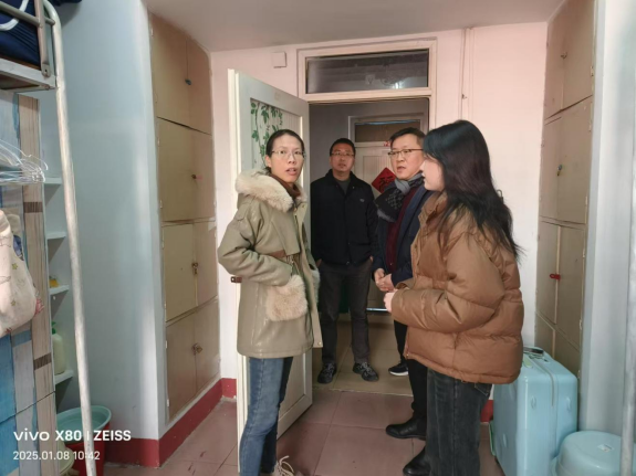 2025年1月8日上午,yl6809永利YL集团党委书记蔡飞、副书记杨思迪、学生科科长丁侃及全体辅导员一同前往学生宿舍,开展寒假前的安全检查工作。