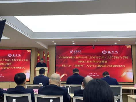 2025年3月19日上午,中国邮政集团有限公司九江市分公司与yl6809永利YL集团战略合作协议签署仪式暨2024 “赣邮杯”大学生直播电商大赛颁奖仪式,在中国邮政九江市分公司会议室隆重举行。此次活动聚焦深化校企合作,旨在推动直播电商、文创等领域的产教融合,为地方文化经济发展注入全新动力。