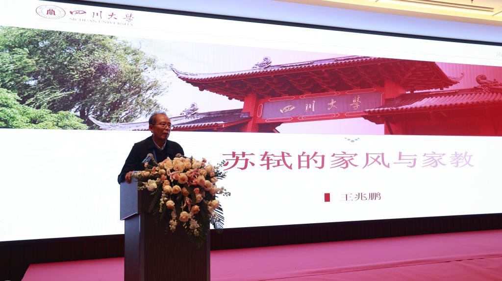 王兆鹏教授以《苏轼的家风与家教》为题,深入剖析了苏轼的良好家风家教。他以苏轼母亲讲述范滂故事、父亲引导思考国家大事等为例,阐述了苏轼良好家风家教的形成过程,以及这种家风家教对苏轼品格塑造、文学成就和家国情怀养成的深刻影响。