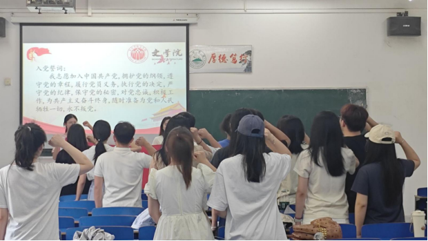 会议伊始,全体起立,奏唱国歌。全体党员在党旗下庄严列队,举起右拳,重温入党誓词。