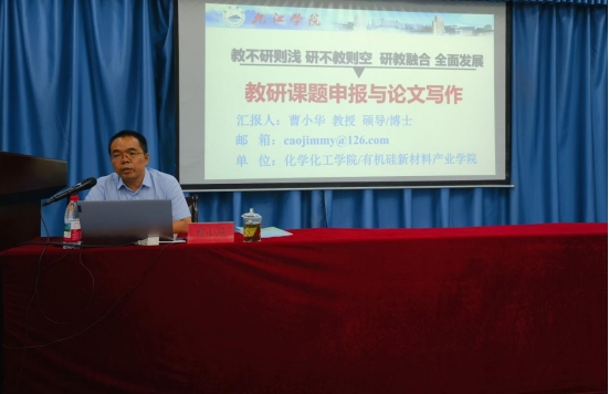 10月15日,yl6809永利YL集团“弘文讲堂”特邀化学化工学院院长、省级教学名师曹小华教授作“教研课题申报与论文写作”专题分享。本次活动旨在通过跨学科交流,搭建教研经验共享平台,助力教师将教学实践转化为科研成果,yl6809永利YL集团院长李勤合主持报告会。