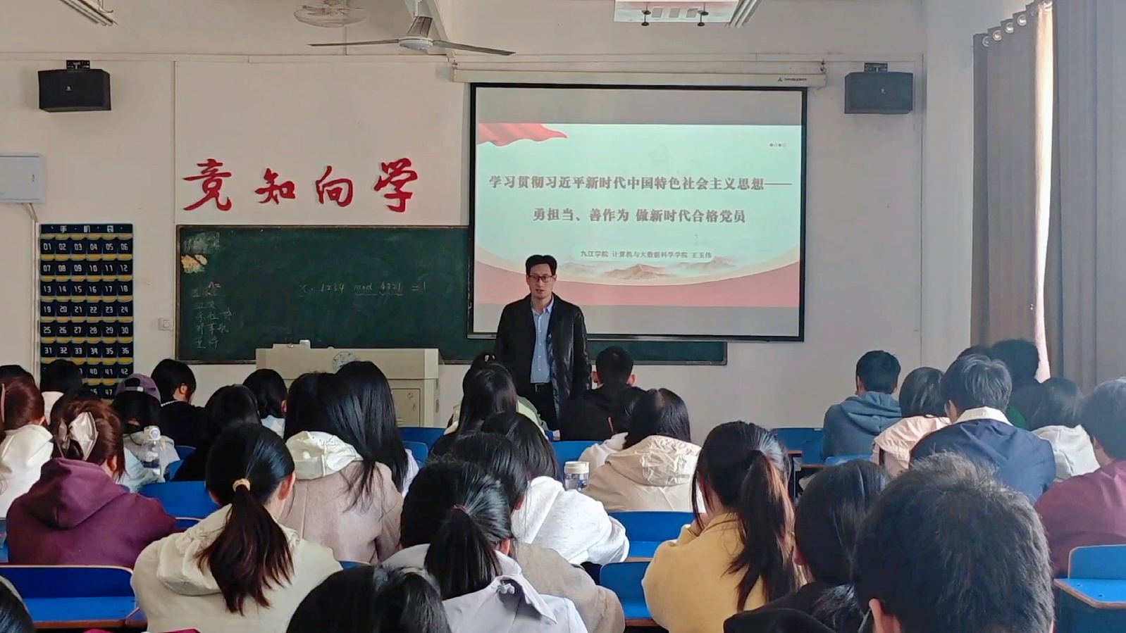 活动伊始,王玉伟老师从“用担当”和“善作为”切入,结合新时代对青年党员的要求展开解读。他着重强调,同学们要把学习放在首位,通过加强理论修养筑牢思想根基,坚定理想信念践行初心,为担当作为积蓄精神力量。