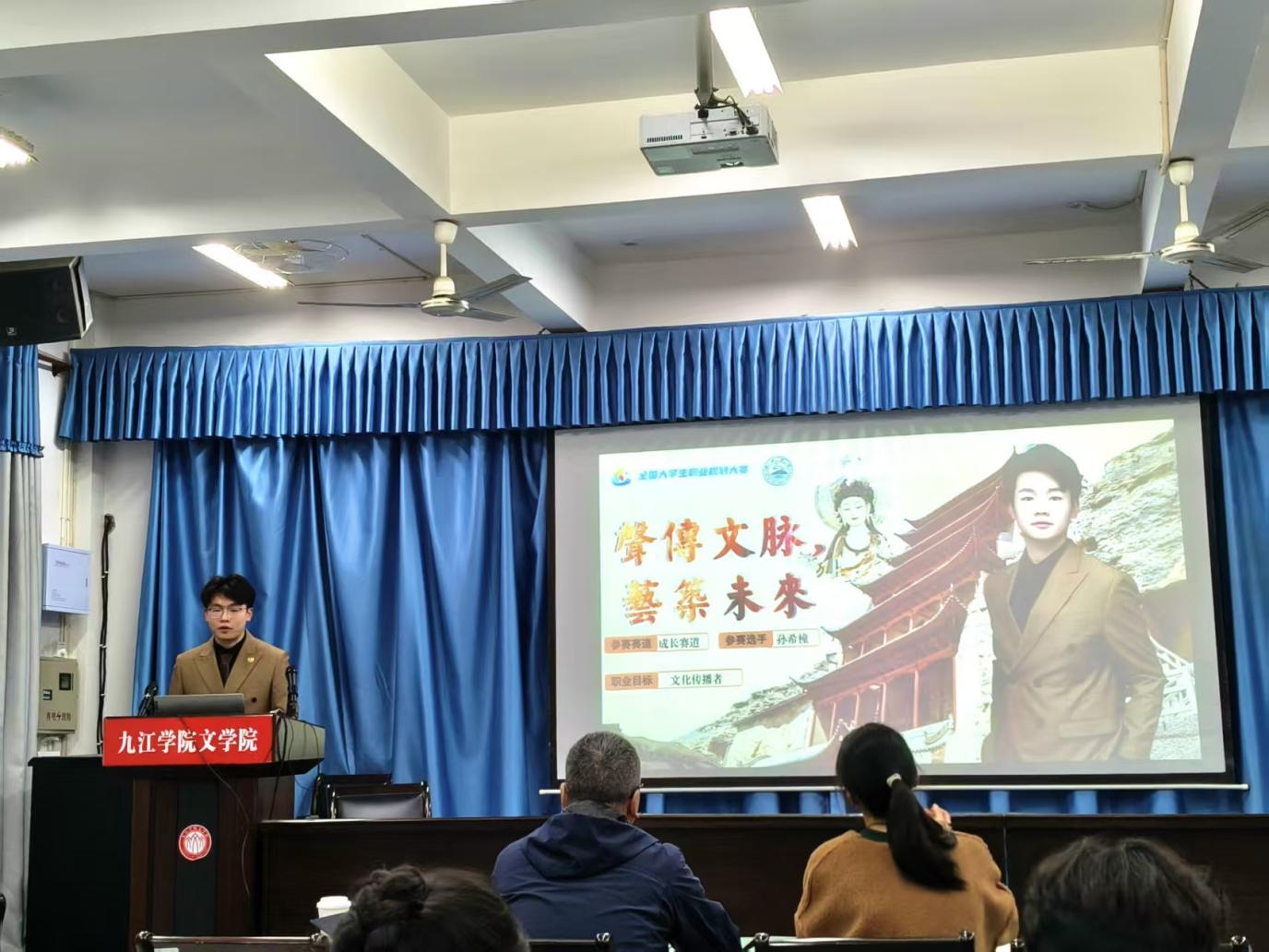 比赛现场,选手们依次登台,以饱满的热情、沉稳的姿态展开精彩陈述。有的结合汉语言文学、新闻传播等专业特色,援引详实行业数据、剖析前沿发展趋势,让职业规划兼具前瞻性与可行性;有的分享个人实习实践经历,辅以生动图表与真实案例,将抽象的职业发展策略具象化,充分展现了当代大学生缜密的逻辑思维、清晰的表达能力与对未来职业的深度洞察。“站在台上时手心直冒汗,但心里特别坚定。能和这么多优秀的同学同台竞技,大家都卯足了劲想展现最好的自己”,一位参赛选手的赛后感悟,道出了所有参赛者的心声。选手们的精心筹备与出色表现,让赛场气氛紧张而热烈,台下观众全神贯注,时而为精彩发言鼓掌喝彩,时而低头记录实用经验,不少同学暗自激励自己,要在未来的职业道路上主动探索、科学规划。