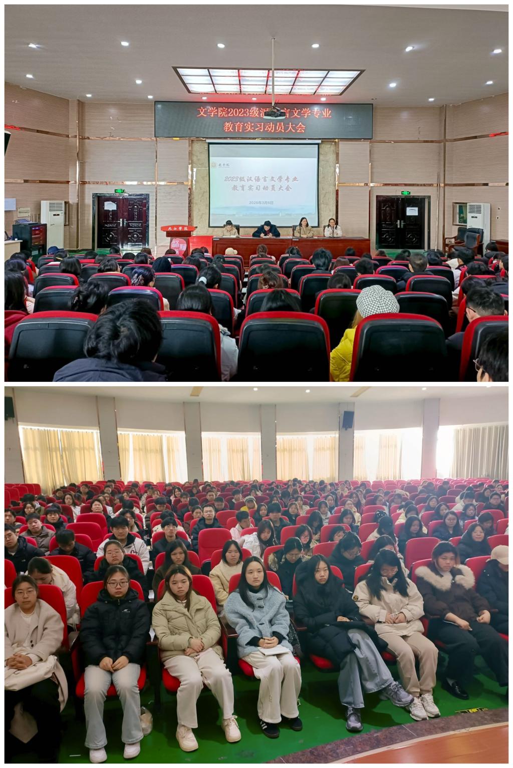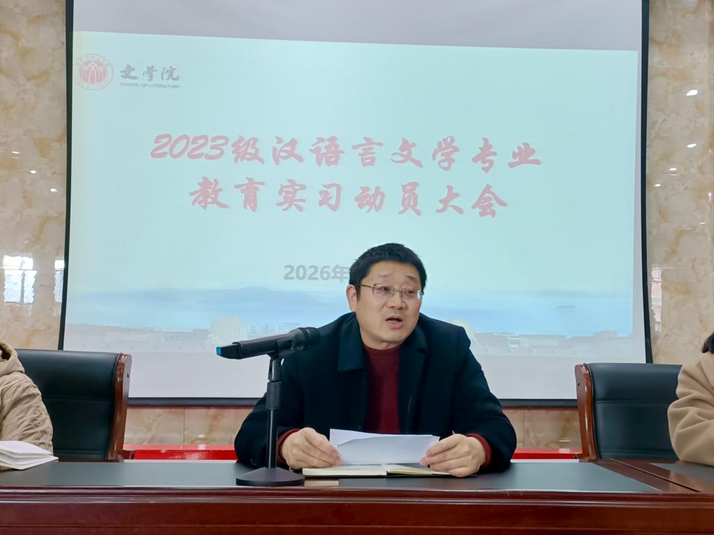 为扎实推进2026年春季师范生教育实习工作,确保实习安全有序进行,yl6809永利YL集团于3月6日上午9:00在香远楼报告厅召开2026年春季师范生教育实习工作部署会。学院党委书记邓海波、副院长吴雯雯、教研科袁安安、2023级汉语言文学各班班主任、实习指导老师代表及全体实习生参加会议,会议由语文教育教研室主任鲍静怡老师主持。