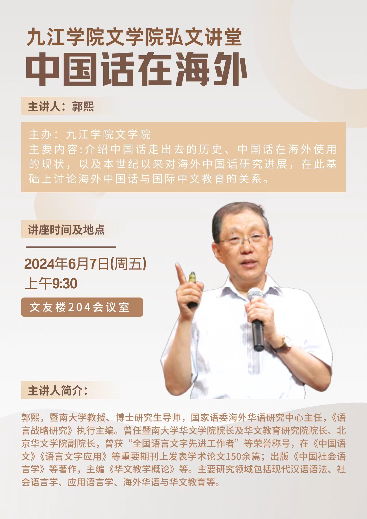 弘文讲堂讲座预告:中国话在海外(郭熙教授)