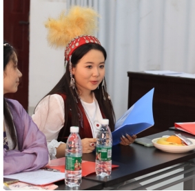 节目表演将座谈会的氛围推向了高潮。古丽娜•阿依丁(哈萨克族)与汉族代表姜含羽、祝心悦、李天露凭借精湛舞技和悠扬歌声共同演绎《我的祖国》,那动人的表演让人心潮澎湃。接着,娜菲莎•艾麦提(维吾尔族)、雷映(畲族)、祝心悦和李天露深情朗诵《山河同春,民族同心》,宛如一曲动人心弦的乐章,尽显文字的力量与魅力。之后,大家合唱《爱我中华》,展现出民族同心的磅礴力量。