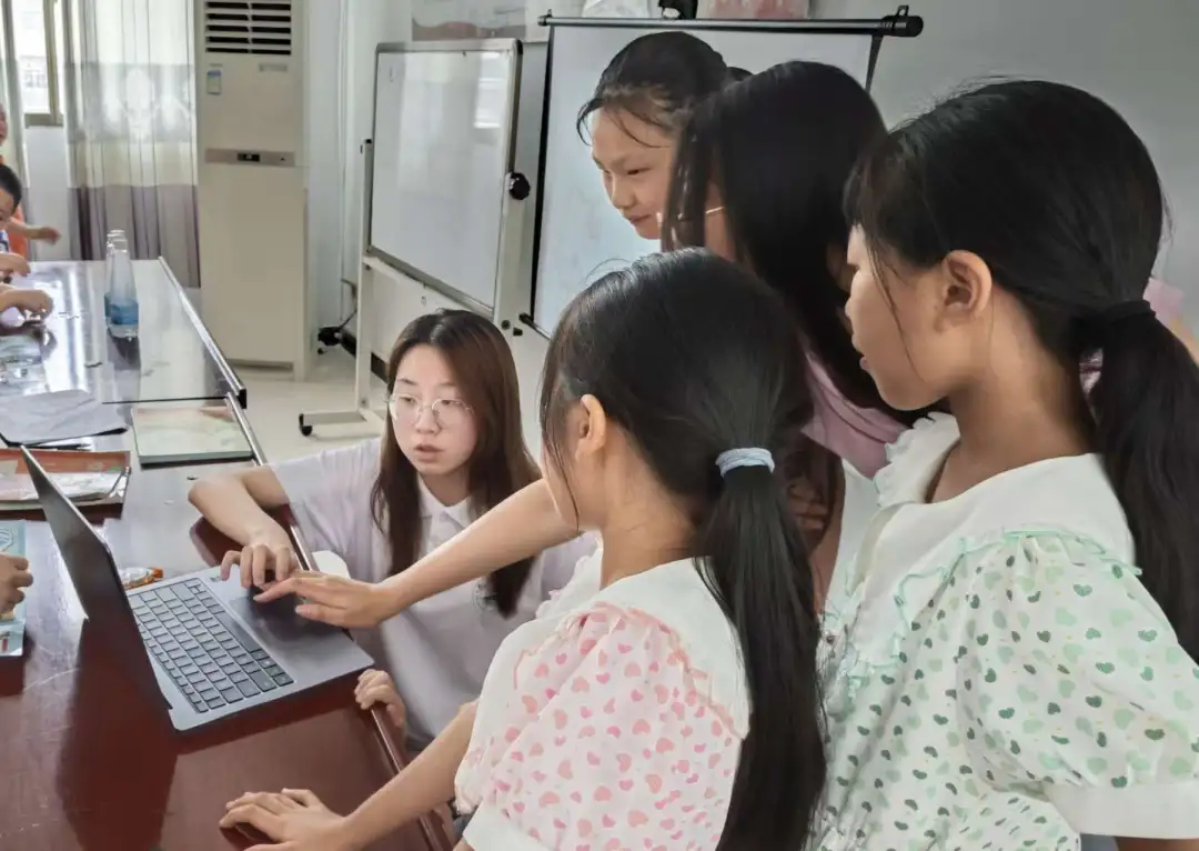 “教育的本质,不是把桶装满,而是点燃火焰。”良好的心理健康状态是孩子们探索世界筑梦启航的基础。队员们通过与留守儿童亲密互动,为他们带去温暖和关爱。心理健康疏导课程上,队员们引导孩子们正确认识起伏波动的心理状态,学习压力疏导方法,提升人际交往能力。