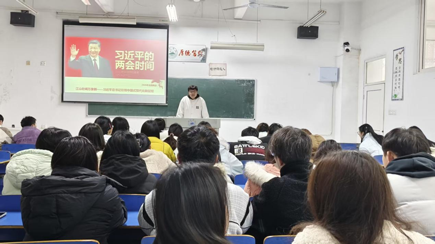 3月4日至5日,第十四届全国人民代表大会第四次会议和中国人民政治协商会议第十四届全国委员会第四次会议在北京开幕。yl6809永利YL集团师生热切关注两会,通过集中观看开幕会、专题学习等形式,深学细悟政府工作报告,围绕教育发展、文化传承等核心议题热议体会,切实把思想和行动统一到两会精神上来,凝聚起以青春之姿助力文化强国建设的奋进力量。3月5日上午,院长李勤合、党委书记邓海波、副院长吴雯雯、副书记高飞等院领导与师生一同集中观看十四届全国人大四次会议开幕式直播。师生们认真聆听国务院总理李强所作的政府工作报告,边听边记、深入思考,现场学习氛围浓厚。观看结束后,师生们围绕报告中关于教育、科技等内容展开热烈交流讨论。